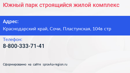 Южный парк, строящийся жилой комплекс по адресу Краснодарский край, Сочи, Пластунская, 104в стр в дальнейшем Организация, размещена в следующих категориях:
