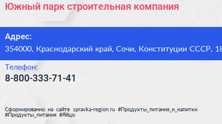 Южный парк, строительная компания по адресу 354000, Краснодарский край, Сочи, Конституции СССР, 18 в дальнейшем Организация, размещена в следующих категориях: