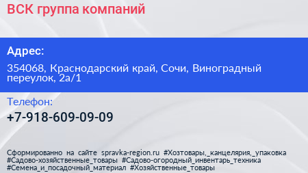 ВСК, группа компаний по адресу 354068, Краснодарский край, Сочи, Виноградный переулок, 2а/1 в дальнейшем Организация, размещена в следующих категориях: