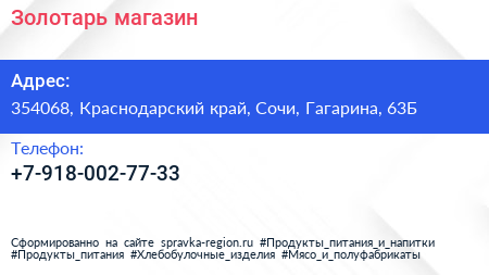 Золотарь, магазин по адресу 354068, Краснодарский край, Сочи, Гагарина, 63Б в дальнейшем Организация, размещена в следующих категориях: