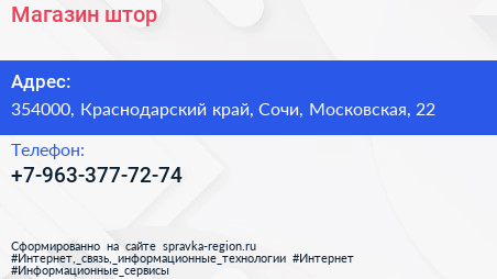 Магазин штор по адресу 354000, Краснодарский край, Сочи, Московская, 22 в дальнейшем Организация, размещена в следующих категориях: