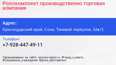 Роллкомплект, производственно-торговая компания по адресу Краснодарский край, Сочи, Теневой переулок, 16в/1 в дальнейшем Организация, размещена в следующих категориях: