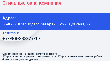 Стильные окна, компания по адресу 354068, Краснодарский край, Сочи, Донская, 92 в дальнейшем Организация, размещена в следующих категориях: