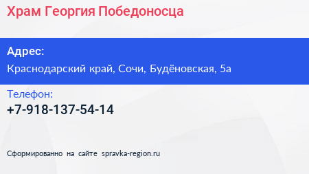 Храм Георгия Победоносца по адресу Краснодарский край, Сочи, Будёновская, 5а в дальнейшем Организация, размещена в следующих категориях: