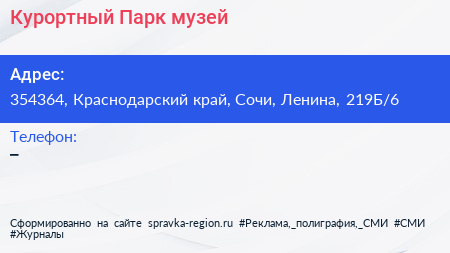 Курортный Парк, музей по адресу 354364, Краснодарский край, Сочи, Ленина, 219Б/6 в дальнейшем Организация, размещена в следующих категориях: