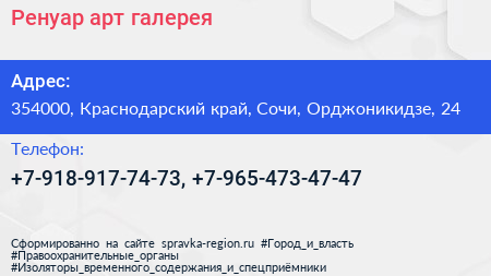Ренуар, арт-галерея по адресу 354000, Краснодарский край, Сочи, Орджоникидзе, 24 в дальнейшем Организация, размещена в следующих категориях: