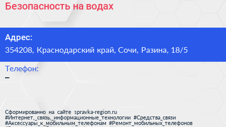 Безопасность на водах по адресу 354208, Краснодарский край, Сочи, Разина, 18/5 в дальнейшем Организация, размещена в следующих категориях: