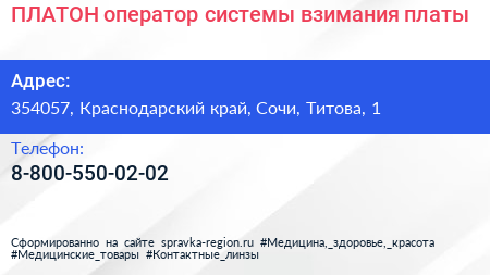 ПЛАТОН, оператор системы взимания платы по адресу 354057, Краснодарский край, Сочи, Титова, 1 в дальнейшем Организация, размещена в следующих категориях: