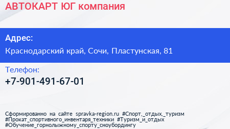 АВТОКАРТ-ЮГ, компания по адресу Краснодарский край, Сочи, Пластунская, 81 в дальнейшем Организация, размещена в следующих категориях: