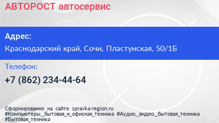 АВТОРОСТ, автосервис по адресу Краснодарский край, Сочи, Пластунская, 50/1Б в дальнейшем Организация, размещена в следующих категориях: