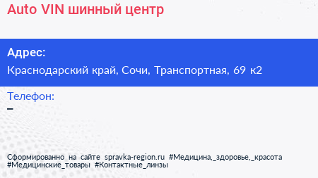 Auto-VIN, шинный центр по адресу Краснодарский край, Сочи, Транспортная, 69 к2 в дальнейшем Организация, размещена в следующих категориях: