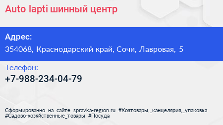 Auto-lapti, шинный центр по адресу 354068, Краснодарский край, Сочи, Лавровая, 5 в дальнейшем Организация, размещена в следующих категориях:
