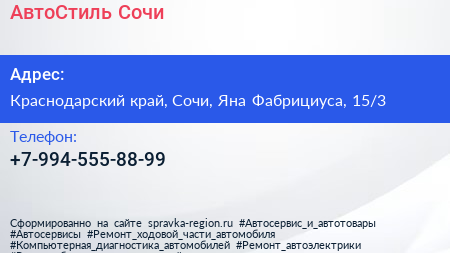 АвтоСтиль Сочи по адресу Краснодарский край, Сочи, Яна Фабрициуса, 15/3 в дальнейшем Организация, размещена в следующих категориях: