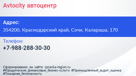 Avtocity, автоцентр по адресу 354200, Краснодарский край, Сочи, Калараша, 170 в дальнейшем Организация, размещена в следующих категориях: