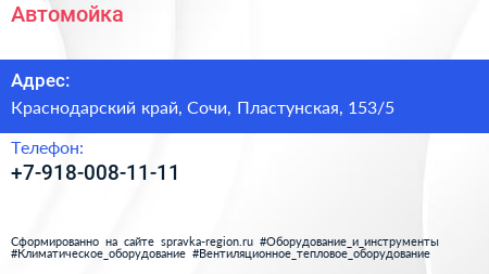 Автомойка по адресу Краснодарский край, Сочи, Пластунская, 153/5 в дальнейшем Организация, размещена в следующих категориях: