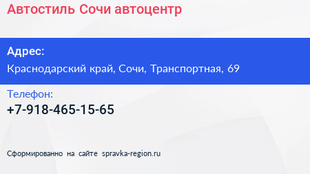 Автостиль Сочи, автоцентр по адресу Краснодарский край, Сочи, Транспортная, 69 в дальнейшем Организация, размещена в следующих категориях: