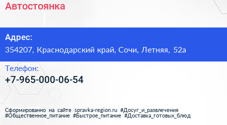 Автостоянка по адресу 354207, Краснодарский край, Сочи, Летняя, 52а в дальнейшем Организация, размещена в следующих категориях: