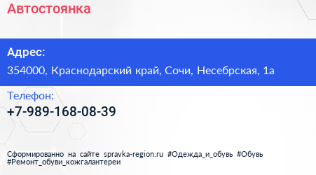 Автостоянка по адресу 354000, Краснодарский край, Сочи, Несебрская, 1а в дальнейшем Организация, размещена в следующих категориях: