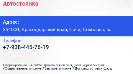 Автостоянка по адресу 354000, Краснодарский край, Сочи, Соколова, 5а в дальнейшем Организация, размещена в следующих категориях: