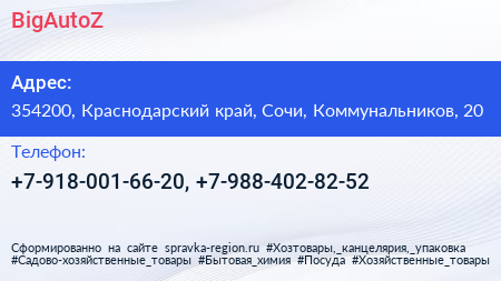 BigAutoZ по адресу 354200, Краснодарский край, Сочи, Коммунальников, 20 в дальнейшем Организация, размещена в следующих категориях: