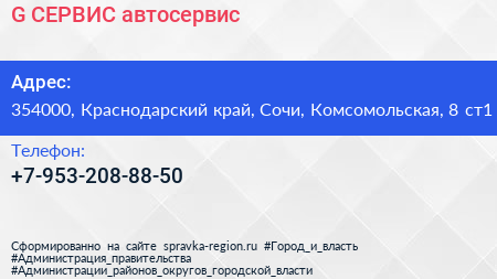 G-СЕРВИС, автосервис по адресу 354000, Краснодарский край, Сочи, Комсомольская, 8 ст1 в дальнейшем Организация, размещена в следующих категориях: