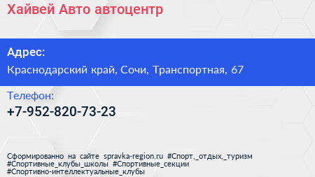 Хайвей Авто, автоцентр по адресу Краснодарский край, Сочи, Транспортная, 67 в дальнейшем Организация, размещена в следующих категориях: