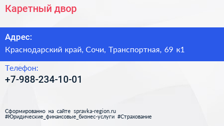 Каретный двор по адресу Краснодарский край, Сочи, Транспортная, 69 к1 в дальнейшем Организация, размещена в следующих категориях: