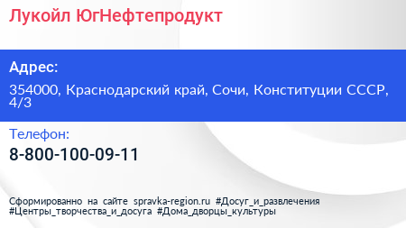 Лукойл-ЮгНефтепродукт по адресу 354000, Краснодарский край, Сочи, Конституции СССР, 4/3 в дальнейшем Организация, размещена в следующих категориях: