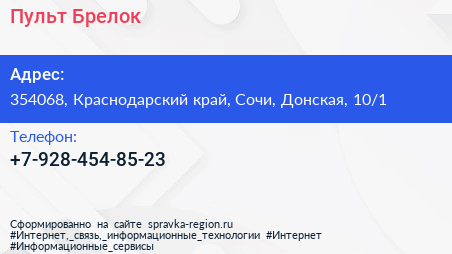 Пульт-Брелок по адресу 354068, Краснодарский край, Сочи, Донская, 10/1 в дальнейшем Организация, размещена в следующих категориях: