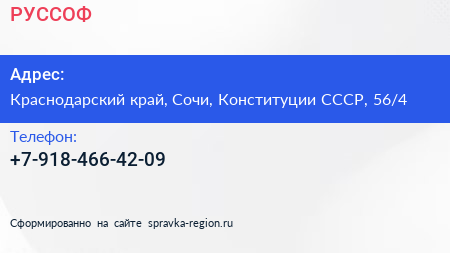 РУССОФ по адресу Краснодарский край, Сочи, Конституции СССР, 56/4 в дальнейшем Организация, размещена в следующих категориях: