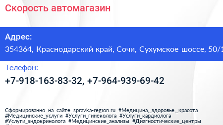 Скорость, автомагазин по адресу 354364, Краснодарский край, Сочи, Сухумское шоссе, 50/1 в дальнейшем Организация, размещена в следующих категориях:
