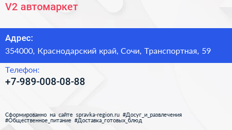 V2, автомаркет по адресу 354000, Краснодарский край, Сочи, Транспортная, 59 в дальнейшем Организация, размещена в следующих категориях: