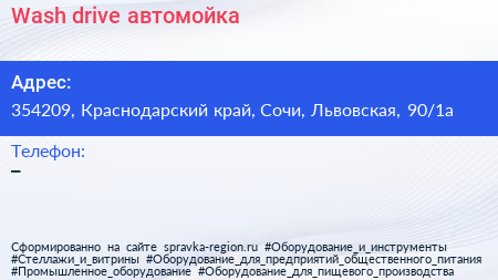 Wash & drive, автомойка по адресу 354209, Краснодарский край, Сочи, Львовская, 90/1а в дальнейшем Организация, размещена в следующих категориях: