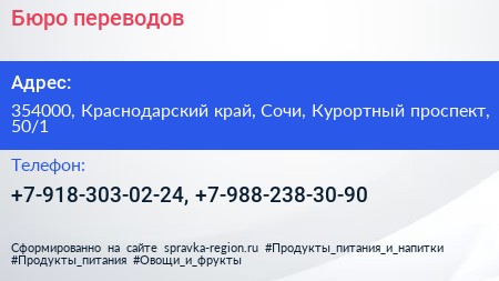 Бюро переводов по адресу 354000, Краснодарский край, Сочи, Курортный проспект, 50/1 в дальнейшем Организация, размещена в следующих категориях:
