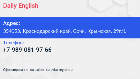 Daily English по адресу 354053, Краснодарский край, Сочи, Крымская, 29г/1 в дальнейшем Организация, размещена в следующих категориях:
