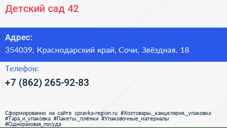 Детский сад №42 по адресу 354039, Краснодарский край, Сочи, Звёздная, 18 в дальнейшем Организация, размещена в следующих категориях: