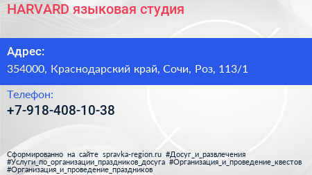 HARVARD, языковая студия по адресу 354000, Краснодарский край, Сочи, Роз, 113/1 в дальнейшем Организация, размещена в следующих категориях: