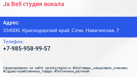 Ja Bell, студия вокала по адресу 354000, Краснодарский край, Сочи, Навагинская, 7 в дальнейшем Организация, размещена в следующих категориях: