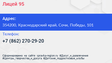 Лицей №95 по адресу 354200, Краснодарский край, Сочи, Победы, 101 в дальнейшем Организация, размещена в следующих категориях: