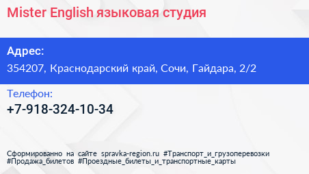 Mister English, языковая студия по адресу 354207, Краснодарский край, Сочи, Гайдара, 2/2 в дальнейшем Организация, размещена в следующих категориях: