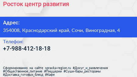 Росток, центр развития по адресу 354008, Краснодарский край, Сочи, Виноградная, 4 в дальнейшем Организация, размещена в следующих категориях: