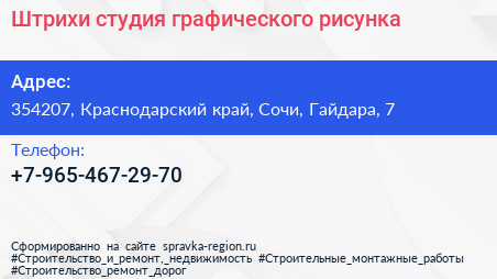 Штрихи, студия графического рисунка по адресу 354207, Краснодарский край, Сочи, Гайдара, 7 в дальнейшем Организация, размещена в следующих категориях: