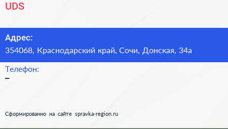 UDS по адресу 354068, Краснодарский край, Сочи, Донская, 34а в дальнейшем Организация, размещена в следующих категориях: