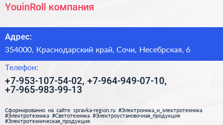 YouinRoll, компания по адресу 354000, Краснодарский край, Сочи, Несебрская, 6 в дальнейшем Организация, размещена в следующих категориях: