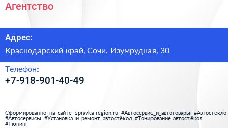 Агентство по адресу Краснодарский край, Сочи, Изумрудная, 30 в дальнейшем Организация, размещена в следующих категориях: