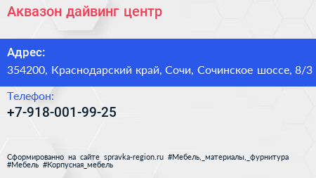 Аквазон, дайвинг-центр по адресу 354200, Краснодарский край, Сочи, Сочинское шоссе, 8/3 в дальнейшем Организация, размещена в следующих категориях: