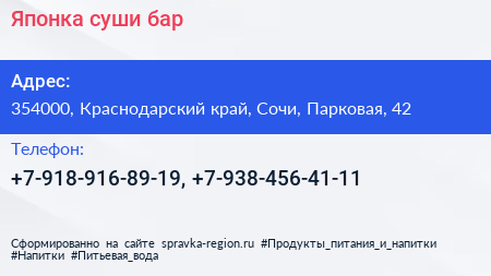 Японка, суши-бар по адресу 354000, Краснодарский край, Сочи, Парковая, 42 в дальнейшем Организация, размещена в следующих категориях: