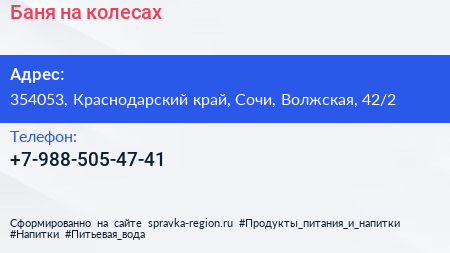 Баня на колесах по адресу 354053, Краснодарский край, Сочи, Волжская, 42/2 в дальнейшем Организация, размещена в следующих категориях: