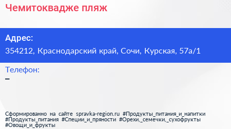Чемитоквадже, пляж по адресу 354212, Краснодарский край, Сочи, Курская, 57а/1 в дальнейшем Организация, размещена в следующих категориях: