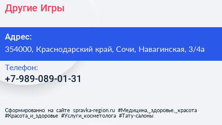 Другие Игры по адресу 354000, Краснодарский край, Сочи, Навагинская, 3/4а в дальнейшем Организация, размещена в следующих категориях: